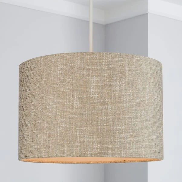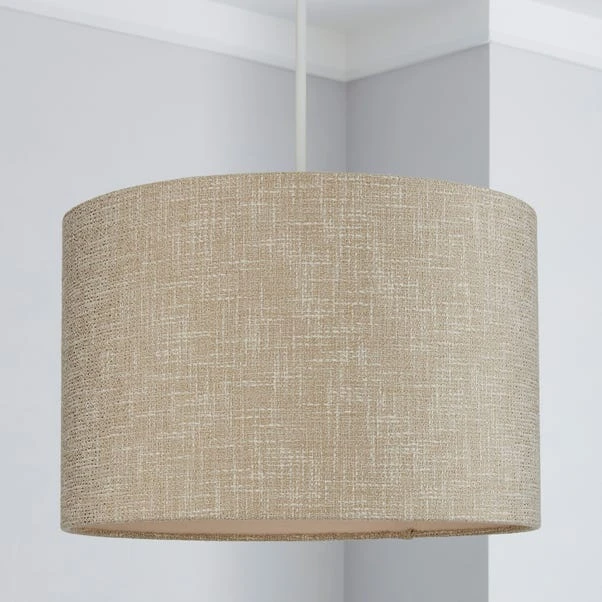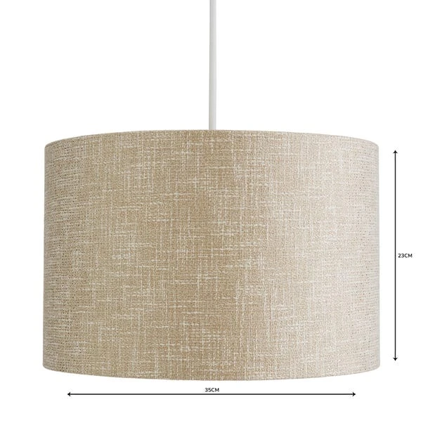 Designed in a 35cm circular drum shape, this lightshade features a natural colourway with woven pattern outside and a fabric lining inside.