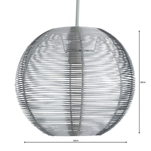 Designed in a perfect sphere shape, this contemporary pendant is crafted from multiple aluminium wires with a silver anodised finish.