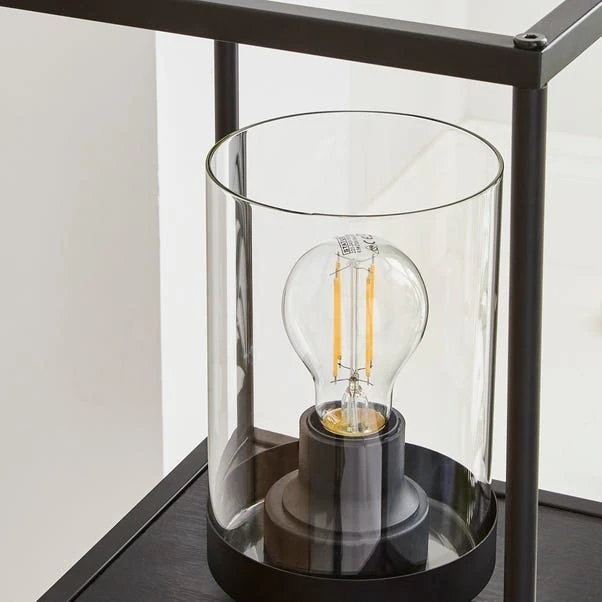 Are you missing that ‘something extra’ in your home? Well our Cole Midi Shelved Floor Lamp might just be that. Featuring 2 spacious shelves for your home decorative accessories and a shelf which includes a built in lamp, encased in a stunning glass cylinder shade. This lamp can easily be switched on and off switch a gentle press with your foot. The Cole shelf and floor lamp is finished in a sleek black colourway to match any home interior.