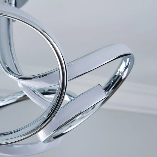 Complete with integrated LED lights, this stunning ceiling fitting features a modern swirl design in a chrome finish. Lighten up your home in a versatile and environmentally friendly way with LED lighting. These integrated LED lights are energy efficient and are compatible with a dimmer switch, allowing you to set the perfect ambience in your home.