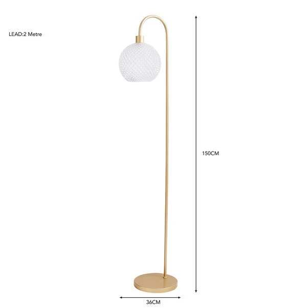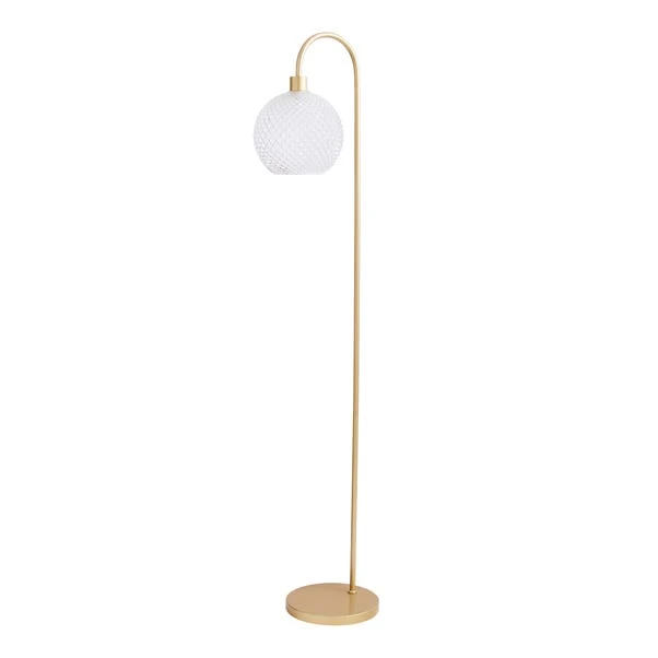 Elegant with a modern gold painted finish, the Elodie Floor Lamp has been crafted with a stunning faceted glass shade in a gorgeous colourway. Simply use your foot to press the foot on and off switch to turn on and off whenever you desire. This floor lamp is available in a range of attractive colourways to suit any home decors. Good things come to those who coordinate, so with not match this floor lamp with the family items available to purchase separately?