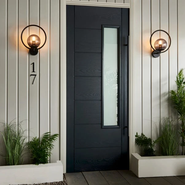 Dunelm Fort Halo Black Smoked Glass Outdoor Wall Light