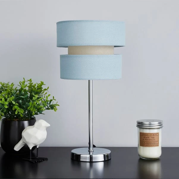 Stylishly made with a chrome based finish, this table lamp features a duck egg cotton shade with a cut-out design and a textured finish. With a collapsible style and little assembly, you’ll have the light shade of your dreams in no time.