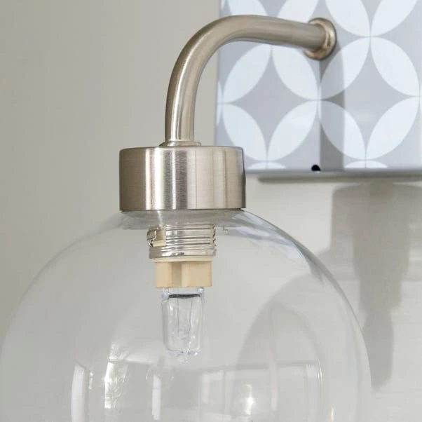 Perfect in any room in your home…yes, even your bathroom, this wall light fitting is the great finishing touch. The glass shade is large enough to illuminate light around your room, and with a dimmable switch, you can create your own ambience. Coordinate with the matching family items available.