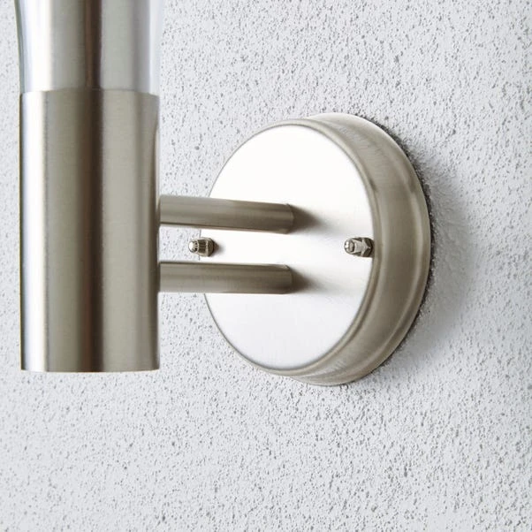 The Grax dimmable wall light features a tapered wall structure and a stunning brushed stainless steel finish, adding a stylish look to your outdoor space.