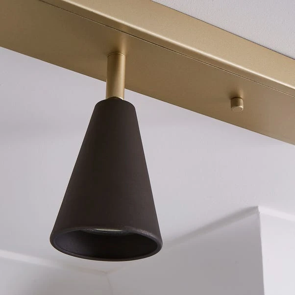 Pairing a satin gold effect finish with contrasting textured dark grey shades, the Grove 4 light spotlight bar fitting would be perfect for the stylish, modern home and features adjustable shades. Perfect for lighting your bar or dining area, this understated, contemporary fitting is fully compatible with dimmer switches, with matching items available, ideal for creating a coordinated look.