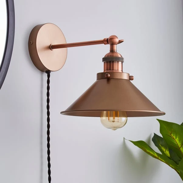 This stylish wall light with an industrial look is the perfect piece to accompany any room of the house, with its modern colourway that complements an array of home decors. It is ideal for renters as it is an easy-to-fit plug in light, with a 1.8m cable length, giving it both the practical and attractive look and feel.
