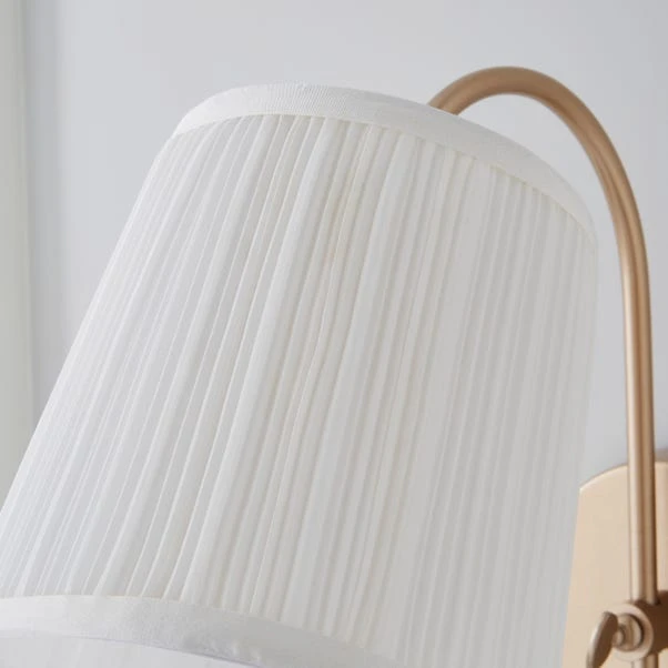 Crafted with a gorgeous soft Gold base, complemented with an Ivory mushroom pleat shade and Ivory twisted fabric cable. This stunning Lorelai Easy Fit Plug-In Wall Light is perfect for adding a feminine touch to your décor, pair this wall light with matching pieces from the Lorelai range for a coordinated look.