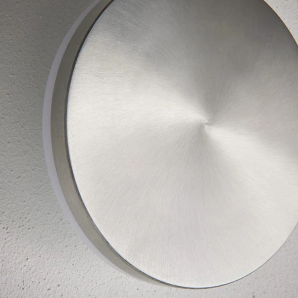 Sleek and modern, the Mason Disc outdoor wall light features a unique design that would bring a stylish touch to your porch or patio. This light is IP44 rated and is crafted from a durable, brushed finished aluminium alloy for a stylish look.