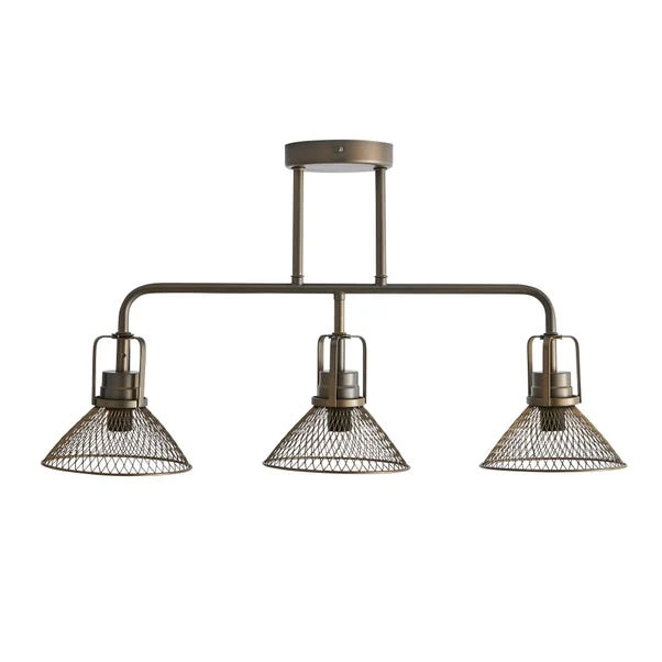Our Nicholas 3 Light Ceiling Fitting boasts an industrial design and a distressed pewter finish. Each of the mesh head are adjustable so you can have them displayed with personal preference. 3 x SES/E14 Round bulbs are required to be purchased in conjunction with the Nicholas Ceiling Light. Fully dimmable compatible with a suitable bulb and light switch. Matching family items are available in the Nicholas range.