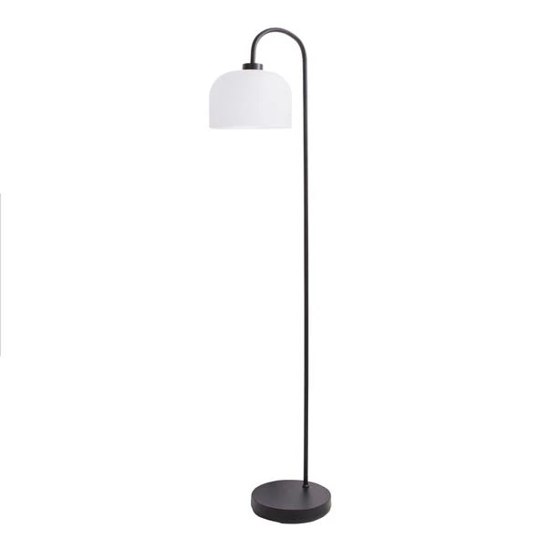 Add a modern and sleek touch to your home with our Palazzo Black Frosted Floor Lamp which has been designed with a frosted dome shade and a black finish. It comes complete with a sturdy and heavy base which comes with a black fabric cable with a foot on and off switch. Requires one bulb which is not included.