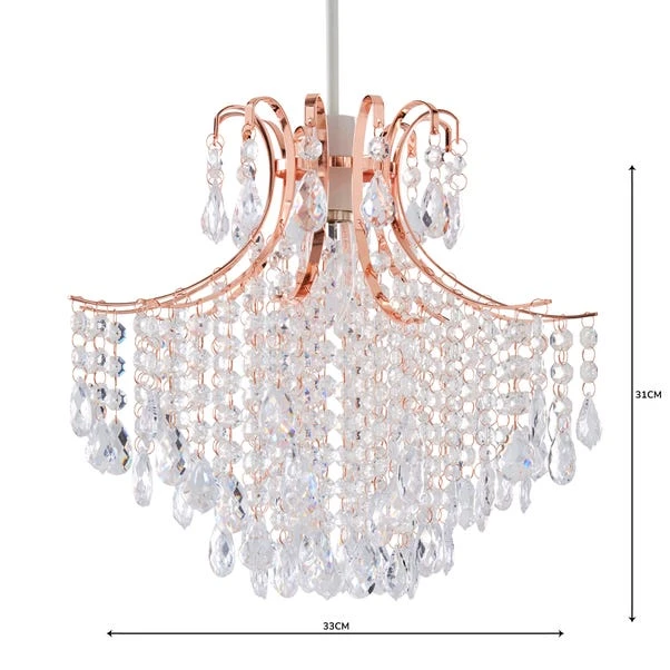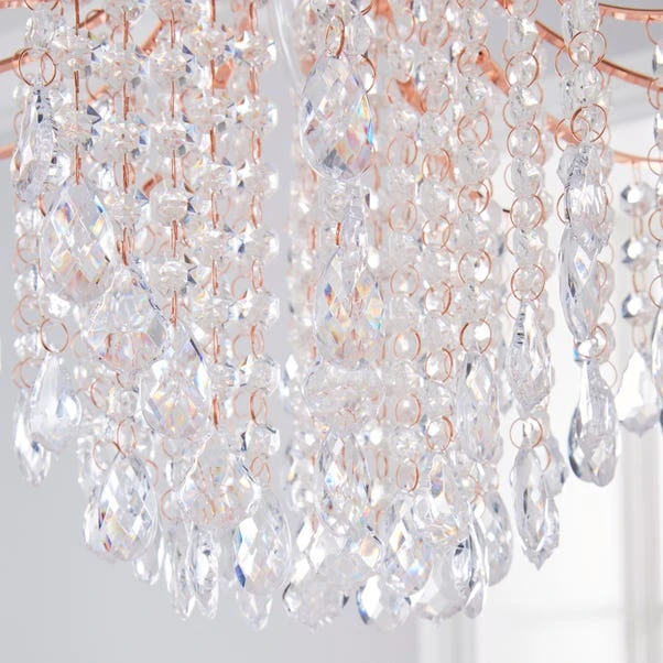 This stunning chandelier pendant will add a touch of glamour to your room. With a copper finish, this light is made from durable steel and acrylic string beads.