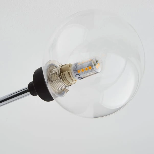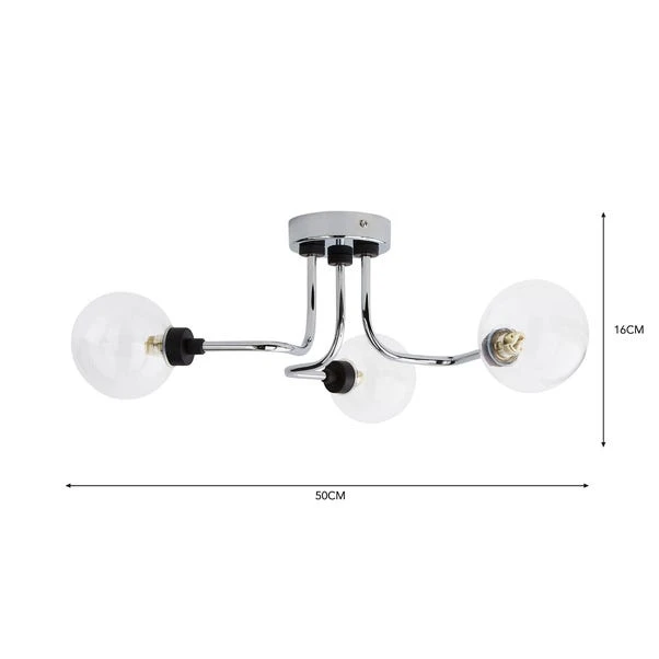 Featuring an elegant and contemporary design, the Tanner 3 Light Ceiling Fitting is beautifully crafted with large round glass shades. This simple yet striking semi-flush fitting light is available in another colourway to suit any home décor. It’s dimmable compatible with a suitable bulb and light switch so you can set the perfect ambience.