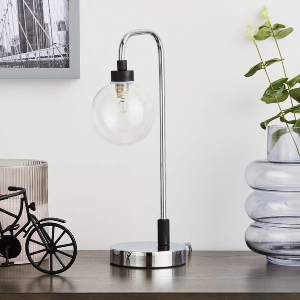 Add a luxe look to your table with our Tanner Table Lamp, detailed with a round glass shade and a shiny finish. It comes with a clear cable wit an easy to switch on and off in-line switch. This lamp is available in another colour and has matching family items available to purchase separately.