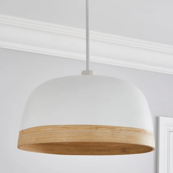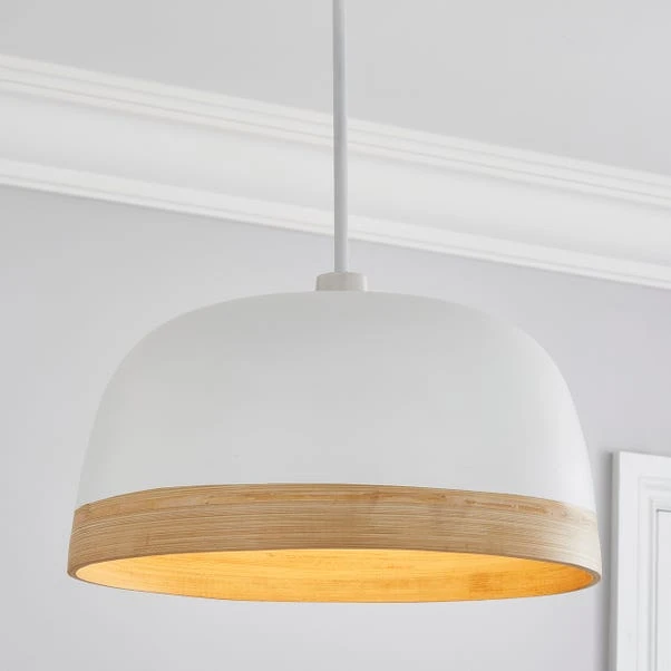The Bamboo Easy Fit Pendant is the perfect way to personalise your room. Crafted from bamboo, this gorgeous dome shaped pendant features a matte black painted finish, complete with a natural bamboo trim. This stunning easy fit pendant is perfect for adding a natural touch to your home and great for brightening up your space.
